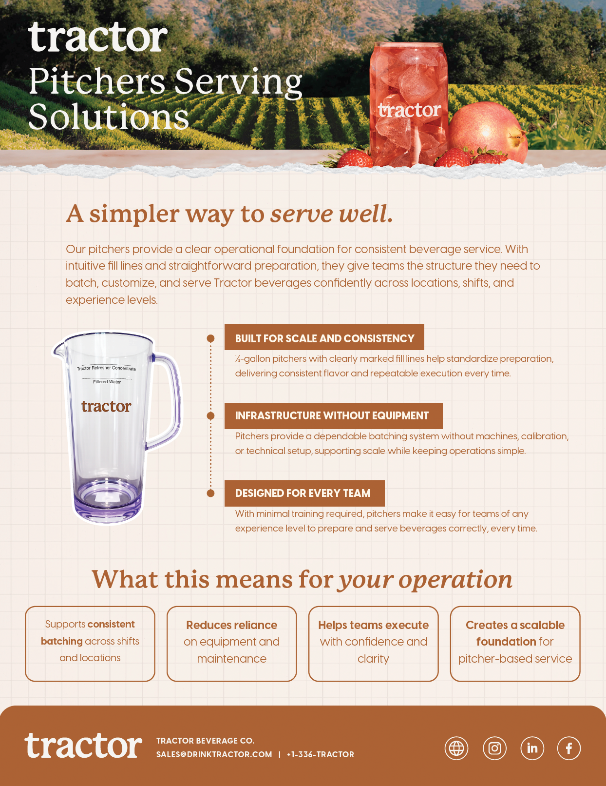 Bring vibrant flavor to beverage programs with Tractor’s certified organic concentrates. Crafted with familiar ingredients and bold, fruit-forward flavors, Tractor helps operators serve refreshing drinks guests trust and love.
